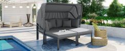 [Retractable Canop] This outdoor sofa, along with two ottomans, effortlessly transforms into a daybed. The built-in canopy provides shade, supported by gaslifts, and can be easily folded and secured with straps when not in use. The versatile design allows you to create a cozy outdoor lounging space that perfectly suits your needs. The durable build ensures long-lasting comfort, while the adjustable canopy adds functionality and convenience.